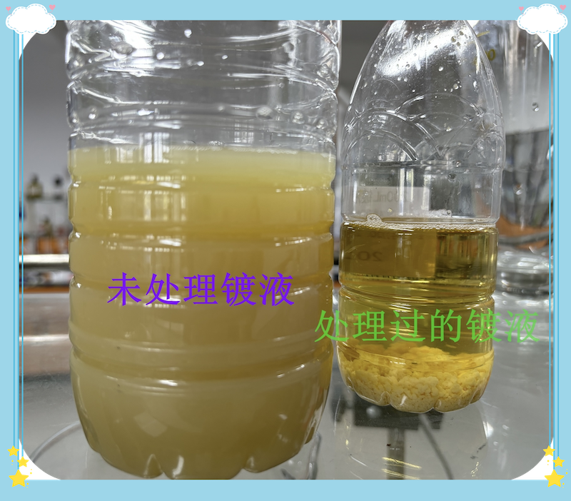 先把鍍液抽到備槽中,加入絮凝劑10~15mL/L(可以先加10mL/L,充分?jǐn)嚢?5~30分鐘后再加5mL/L左右,再攪拌15~30分鐘),要保證絮凝劑與槽液的每個(gè)地方都有混合(攪的時(shí)候不要太用力,否則容易把懸浮物攪碎),然后讓其充分沉淀數(shù)小時(shí)(或者干脆沉淀過夜,沉淀時(shí)間越久上層鍍液越清澈),再把上層清澈鍍液抽到鍍缸中,分析各組分含量調(diào)整到規(guī)定濃度,補(bǔ)充開缸劑和光亮劑后即可繼續(xù)施鍍。